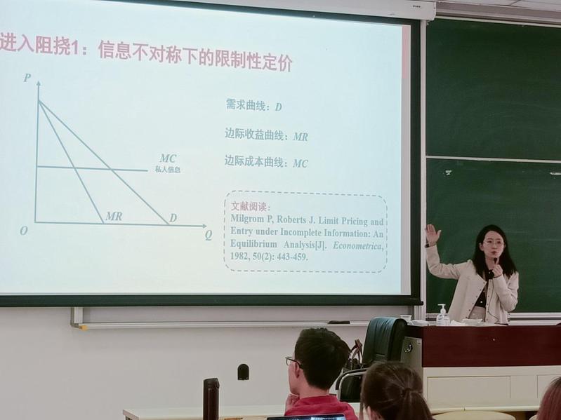 在教学过程中,她常常思考:如何把“理论经济学”的课程上得有趣?如何让学生运用理论工具辩证地分析中国的现实经济问题?为了能让学生准确掌握数理模型背后的经济学直觉,她将案例教学与互动式教学相结合,借助丰富的视频与新闻报道资料,激发学生分析现实问题的兴趣。在学生对不完全信息下的一系列问题产生了经济学直觉后,再引导学生进行逻辑清晰的理论分析。