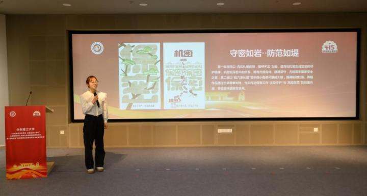 据了解,此次海报大赛作品以总体国家安全观“五大要素”“五对关系”“五个统筹”“十个坚持”“二十个重点领域”等基础知识为基本元素,鼓励同学们从不同角度挖掘和表现主题,用创意和智慧,助力国家安全教育入脑入心。在优秀作品颁奖仪式环节,华理艺术设计与传媒学院副院长、大赛评审专家组组长傅蓉蓉教授对大赛作品进行了专业细致的点评。