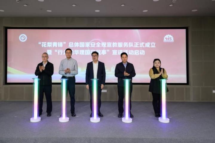 华理党委副书记沈海涛指出,华东理工大学深入学习贯彻习近平总书记关于全面加强国家安全教育的重要指示精神,坚定不移贯彻总体国家安全观,充分发挥学校学科优势和育人特色,在国家安全教育领域做了一些尝试,在国家安全教育领域取得了一些成果。在第十个全民国家安全教育日之际,成立“花梨青锋”总体国家安全观宣教服务队,是学校青年学生践行总体国家安全观的生动实践探索,有助于“学”“研”“宣”一体化推进国家安全宣传教育。