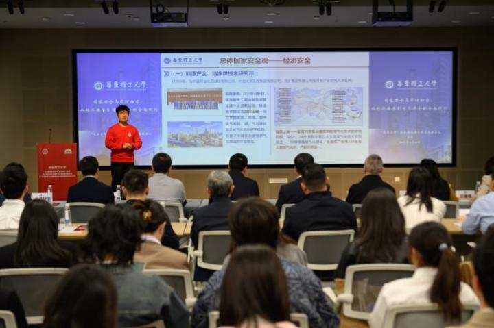 “花梨青锋”总体国家安全观宣教服务队骨干、校优秀青年志愿者、材料学院大四本科生李政同学结合资源学院事业发展情况,进行了主题宣讲“国家安全与华理担当:从经济安全到生态安全的全面践行”。
