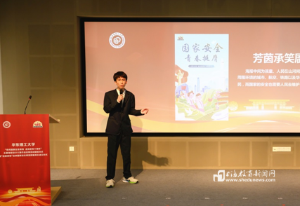 “花梨青锋”总体国家安全观宣教服务队成立暨“行走的华理国安故事”宣讲活动启动环节,由市教委后保处副处长黄峰,团市委学校工作部副部长周薇,校党委副书记沈海涛,校党委常委、党委宣传部部长柴华共同揭幕。“花梨青锋”总体国家安全观宣教服务队骨干、校优秀青年志愿者、材料学院大四本科生李政同学结合资源学院事业发展情况,进行了主题宣讲“国家安全与华理担当:从经济安全到生态安全的全面践行”。
