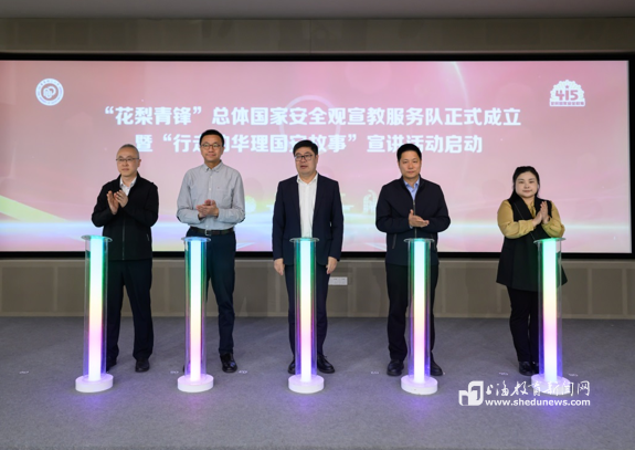 华东理工大学党委副书记沈海涛介绍,学校坚定不移贯彻总体国家安全观,充分发挥学科优势和育人特色,在国家安全教育领域做了一些尝试,在国家安全教育领域取得了一些成果。在第十个全民国家安全教育日之际,成立“花梨青锋”总体国家安全观宣教服务队,是学校青年学生践行总体国家安全观的生动实践探索,有助于“学”“研”“宣”一体化推进国家安全宣传教育。