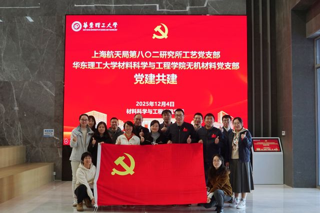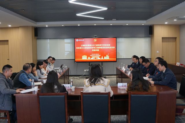为深入学习贯彻党的二十届四中全会精神,加强长三角党建资源融合、区域联动、优势互补,促进基层党建提质增效,12月4日,在先进材料大楼522会议室,上海航天局第八〇二研究所(以下简称“八〇二所”)工艺党支部与华东理工大学材料科学与工程学院无机材料党支部举行党建共建活动。八〇二所工艺技术处处长、党支部书记黄凯,工艺技术处副处长俞玉澄,支部党员蒋海峰、于建鹏、孙嘉隆、王达因,材料学院党委书记袁媛、无机材料党支部书记曾惠丹、支部党员代表、专职组织员等共同参加会议。会议由曾惠丹主持。