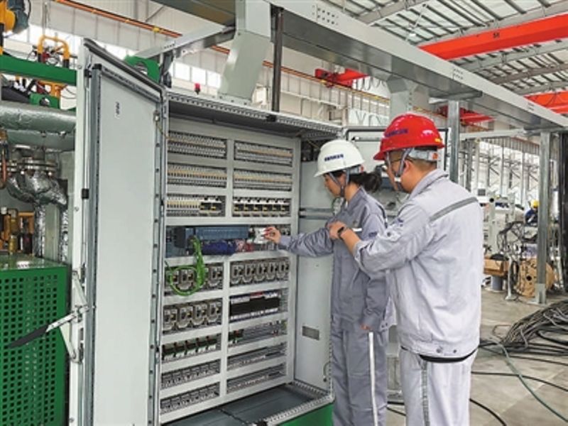华东理工大学研究生与企业装备工程师共同调试设备。