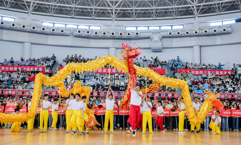 腾跃、翻滚、盘柱……在华东理工大学的训练场上,一条条金龙和一头头醒狮,在学子手中仿佛被注入灵魂,时而昂首啸天,时而俯身探海。这项源自千年的国家级非物质文化遗产,如今在华理校园里不仅“活”了起来,更成为铸魂育人的“热”力量。