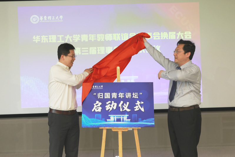 欧美同学会华东理工大学分会第四届理事会副会长、材料科学与工程学院教授刘润辉就“归国青年讲坛”启动的相关背景作了说明。他表示,讲坛以“留学报国、科技报国”为宗旨,以全校留学归国人员和青年教师为服务对象,内容聚焦“教育、科技和人才”,大力弘扬留学报国的光荣传统,以报效国家、服务人民为自觉追求,助力师生坚定“国之所需,吾之所向”的理想信念,着力在科技自立自强上创佳绩,将事业追求与中华民族的伟大复兴连在一起,更好地在服务人民的事业中彰显人生价值。刘润辉与马骧共同为华东理工大学“归国青年讲坛”启动仪式揭牌。
