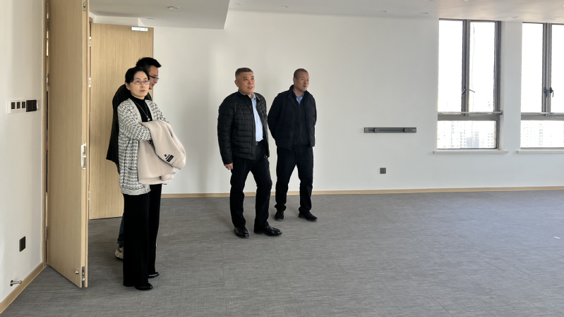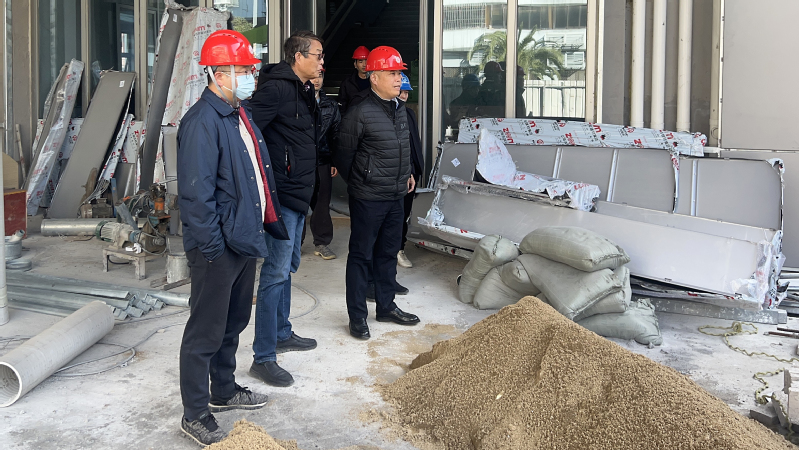 在先进材料大楼施工现场,李涛检查了室内装修进展、室外总体排管情况,听取了项目负责人关于东门提升改造与先进材料大楼施工配合事宜。