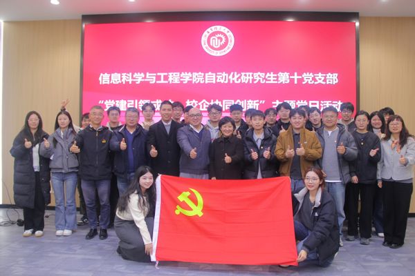 12月26日下午,信息科学与工程学院自动化研究生第十党支部组织开展“党建引领成才,校企协同创新”主题党日活动。校党委常委、副校长王慧锋,中钢集团西安重机有限公司党委书记、董事长李维强,多谱(上海)信息科技有限公司创始人、总经理丁振杰,华为数字能源高级专家倪辉,信息学院党委书记侍洪波、党委副书记许浩及本研党支部70余名学生党员参加活动。活动由自动化研究生第十党支部书记文颖主持。