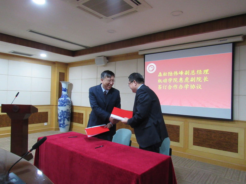 项延训回顾了机动学院与森松集团在科研、实习基地建设方面良好的合作渊源,对森松集团长期支持我校的人才培养工作表示感谢,并结合国家需求对今后的校企深度合作给予了厚望。陆伟峰、李建伟、项延训代表三方签订了捐赠条约,陆伟峰、惠虎签订了合作办学协议,张秀月、陈琴珠及学生代表签订了三方协议。学生代表、过程装备与控制工程专业2017级本科生王澍伟致词,表达了对森松集团和学校的感谢,希望能学以致用,借此机会真正提高工程实践能力。陆伟峰介绍了森松集团(中国)的发展战略,企业发展对人才能力、素质的需求,并鼓励同学们勤奋学习,努力完成森松班的学习任务,成为国家的有用之才。