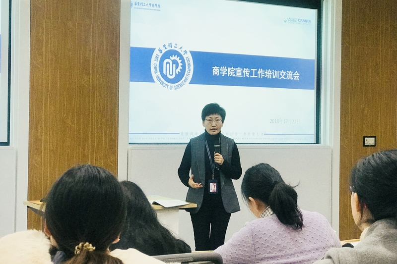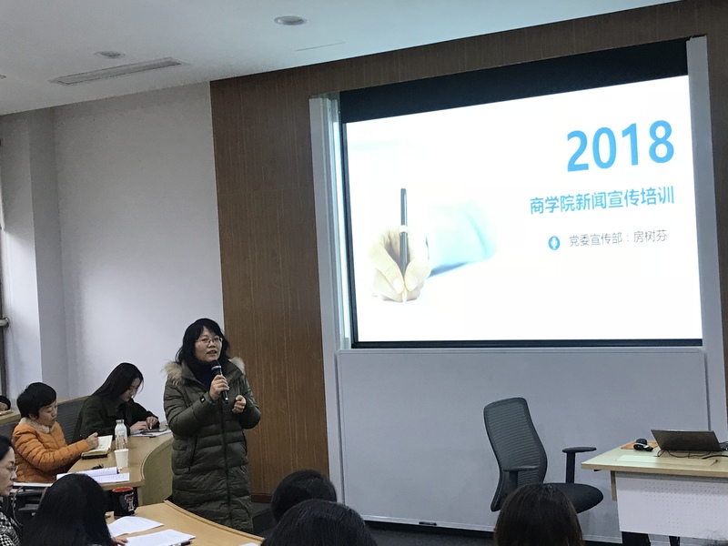 12月27日,在岁末交替之际,商学院举办了宣传工作培训交流会,以不断提高学院宣传队伍工作能力和水平。党委宣传部副部长、新闻中心主任房树芬受邀进行专题培训,商学院党委书记马玲,各系(所)、党政部门、专业学位中心相关负责人和信息员共计40余人参加了本次交流会。会议由商学院副院长、党委宣传委员侯丽敏主持。