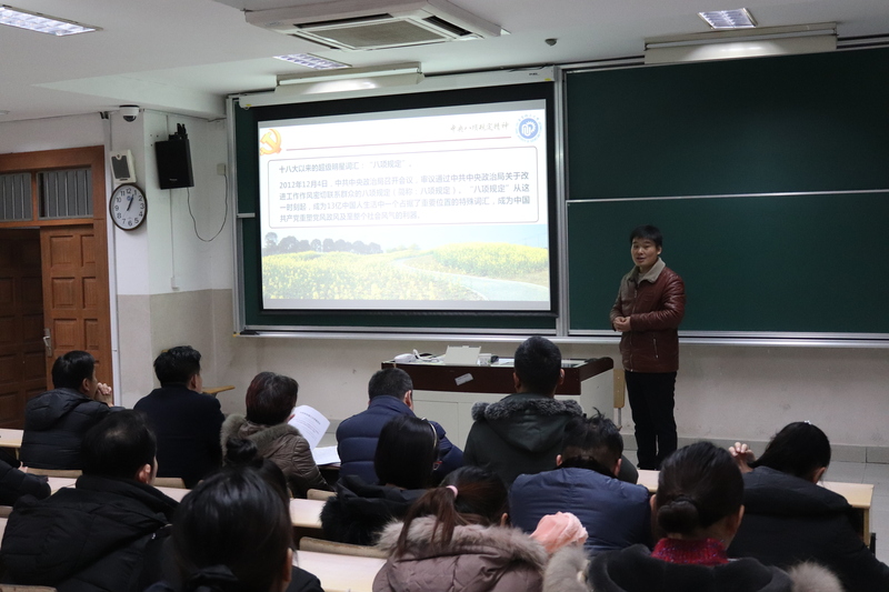 1月5日,校纪委专职纪检员(派驻)杨艳生同志围绕中央八项规定精神的学习分享,为后勤系统班子成员、全体党团员、入党积极分子、各部门骨干等80余人,上了一堂别开生面的党课。本次党课由后勤党委书记朱育红主持。