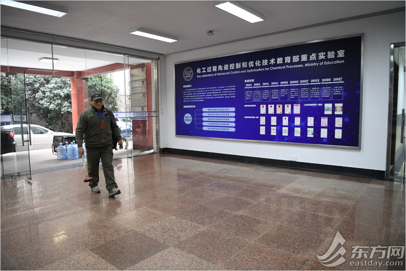 朱小清走进华东理工化工过程先进控制和优化技术教育部重点实验室,这里一楼的女厕所出现堵塞。