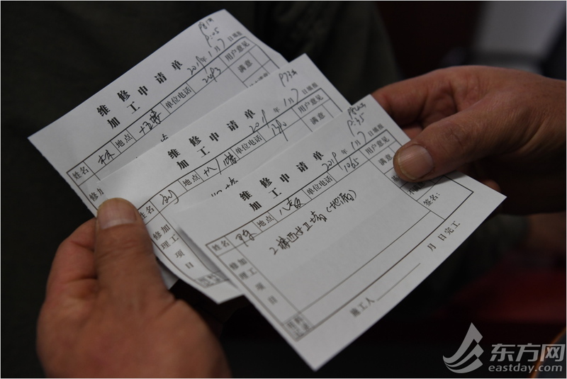 在动力与修缮工程中心,朱小清正在查看当天的报修单。