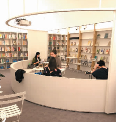 毗邻华东理工大学徐汇校区校门,通过一扇小小的门就是陇上书店:白色的墙壁、白色的钢板书架、白色的桌椅。书店采用“书店+咖啡馆”的经营模式,虽小巧,却在核心区域专门设立了可容纳30-40人围坐的沙龙区域,提供举办文化讲座、学术交流、公益讲座等活动的场所。业态革新,书店开始不仅仅是书店。