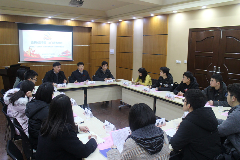 1月10日上午,材料学院硕士研究生171党支部召开“改革开放再出发”专题组织生活会。副校长刘昌胜院士作为党支部联系人参会并与研究生党员进行了深入交流。材料学院党委书记唐颂超、副书记戴诚安、研究生辅导员及党支部全体党员参加了活动。