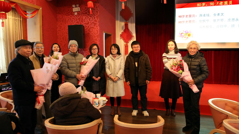 尊老敬老是民盟的光荣传统,为高龄老盟员祝寿一直是团拜会上的传承节目。会上,大家共同为2位90岁和7位80岁的盟员寿星祝寿并献花。