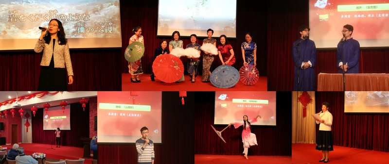 在迎新会上,广大盟员自创的文艺节目精彩纷呈,高潮迭起。多才多艺的盟员们通过表演旗袍秀《茉莉花》、独唱《四季之歌》、相声《富贵图》、口琴《梁祝》《山楂树》、独舞《夜雨双唱》以及黄宜朗诵的安琦老师创作的诗《听,这秋雨声》等表达对新年的祝福。