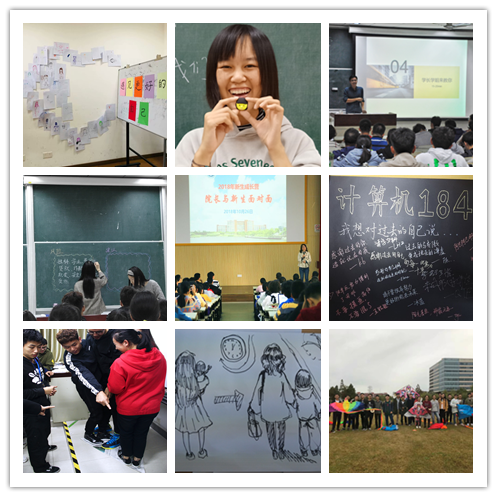 “认识自我”主题,通过开展“猜猜比什么”“自画像”“解忧杂货铺”等,引导新生探索自我,尽快融入班级,解决刚入学各方面的困惑。“认识集体”主题,通过介绍学院的特色项目、特色活动、特色社团,以及沟通训练,帮助学生尽快融入班集体,建立对学院、对班级的归属感。“感恩他人”主题,通过“抓手指”“冥想体验与感恩主题绘画”“我所了解的父母”“我想对你说”等,帮助新生深入探索自我,学会感恩、深化感恩,学习感恩他人和社会。“校园安全”主题,通过“我知道的大学套路”“财务管理”“学长学姐来教你”,介绍大学校园可能存在的潜在风险,防患于未然。“生涯导航”主题,通过“齐步向前走”“MBTI问卷测量和分析”“设计名片”等活动,帮助学生确立发展目标,树立职业生涯规划意识。