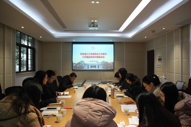 1月15日,2018年度华东理工大学辅导员工作室(精品项目)建设中期推进会召开,8个工作室及3个精品项目的负责人参加会议。会议由学工部副部长胡兵主持。