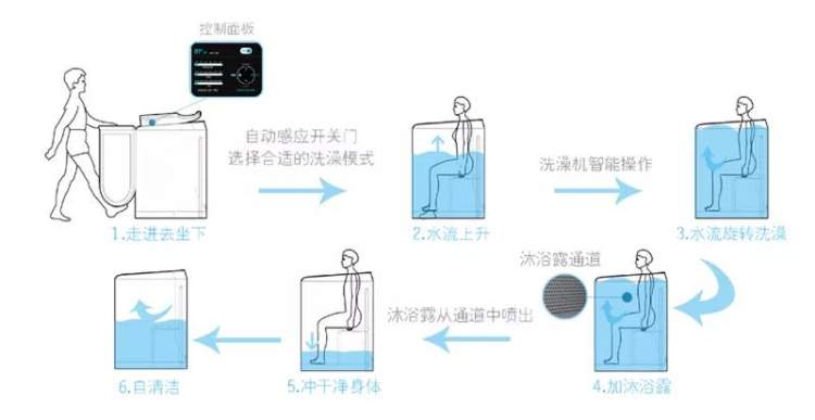 她发现日本三洋公司曾在1970年设计过一款洗澡机,外形像一个加盖的浴缸,利用超声波原理进行清洗。但由于超声波的安全性问题,这款洗澡机最后没有普及开来。