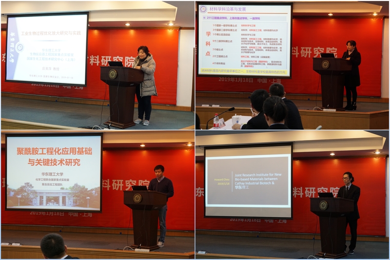 成立仪式后,举行了学术报告会和交流研讨会。生工学院庄英萍、材料学院陈芳萍、化工学院奚桢浩以及凯赛公司的Dr. Howard Chou围绕“生物基材料”的主题发表了学术演讲,并与在场教师展开了热烈研讨。来自校企两方的代表从不同学科视角,提出了如何推动生物基研究的真知灼见,并纷纷为研究院建设献言献策。研讨会由林绍梁主持。