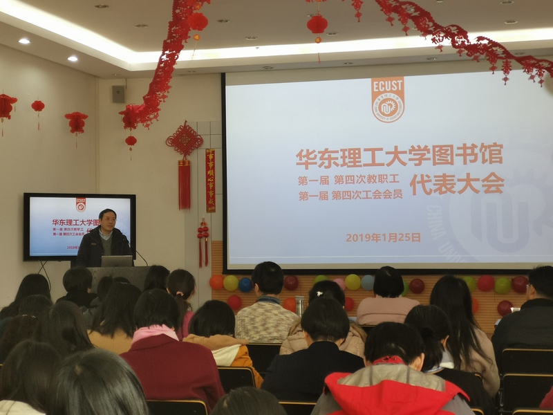 1月25日上午,图书馆第一届第四次教代会、工代会暨全体职工大会在徐汇校区图书馆201室举行,与会代表听取和审议了图书馆行政工作报告、财务工作报告,以及图书馆教代会工会工作报告、工会经费使用报告。会议由图书馆工会副主席杨美珍主持。