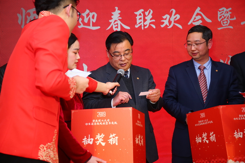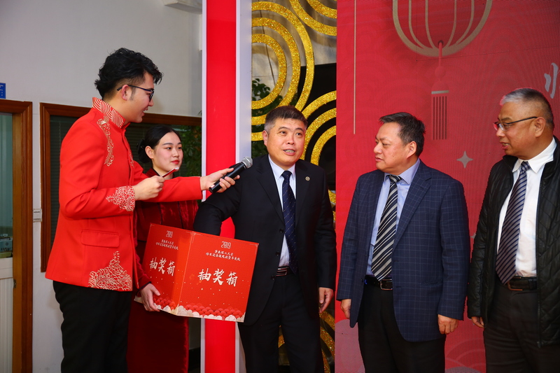 年夜饭现场,校领导和嘉宾向学生赠送了精心准备的春节大礼包,并为寒假留校期间过生日的同学们送上了由全体校领导签名的生日卡片。
