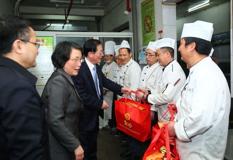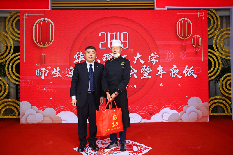 值得一提的是,今年的年夜饭邀请了来自学校定点扶贫县云南寻甸县的厨师马金涛。他用当地食材为留校学生呈上原汁原味的寻甸美食,以此表达对华理助力寻甸脱贫的感激之情。席间,全体校领导还来到餐厅后厨慰问了一线的后勤工作人员,向大家致以新春的问候。