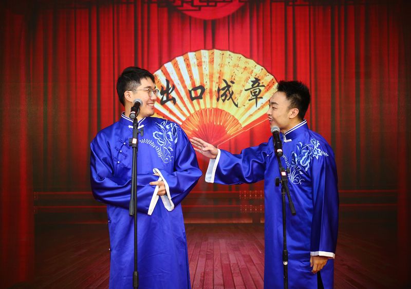 歌曲《歌声飘过四十年》激起了师生对国家发展、学校发展历程的共同回忆,体现了华理师生向着复兴梦接续奋斗的征程,表达了华理师生对乘风破浪再扬帆、改革开放再出发的美好期望。弦乐四重奏《新春乐》奏出了新春佳节热闹欢腾的喜庆氛围,表达了对新时代美好生活的向往。来自老挝的留学生南湘深爱中国传统文化,表演的京剧《新贵妃醉酒》,引起现场师生阵阵掌声。相声《出口成章》精思巧构、活用成语,歌颂改革开放带给中国的巨大变化。舞蹈《冬日暖阳》以轻柔的舞步和悠扬的旋律表达了新时代青年在追梦路上的信心和勇气。歌曲《华理新征程》唱出了新时代华理昂首向前迈进的姿态,表达了新时代华理师生逢山开路,遇水架桥,将改革进行到底的决心和追求美好生活、实现中国梦的愿景。