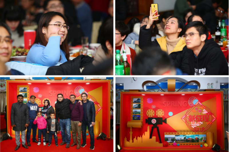 奋进新时代,筑梦新征程。1月28日晚,徐汇校区友谊餐厅张灯结彩,暖意浓浓,2019年师生迎春联欢会暨年夜饭活动隆重举行。上海市教委副主任倪闽景,上海市教委学生处处长郑益慧,校党委书记杜慧芳,校长、党委副书记曲景平,校党委副书记宋来、陈麒,校党委副书记、纪委书记沈志超,副校长钱锋、吴柏钧、辛忠、李涛,以及各学院、相关职能部处负责人与寒假留校的本科生、研究生、留学生代表欢聚一堂,共迎新春佳节。