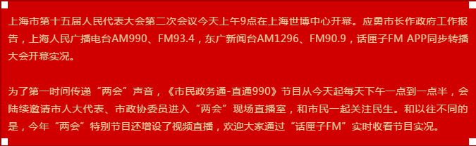 明天上午9点上海新闻广播将和东广新闻台并机直播:市政协十三届二次会议关于“坚决打好污染防治攻坚战,建设生态宜居城市”专题会议。