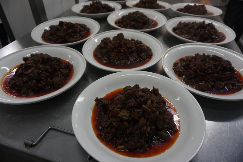 而这其中,寻甸烧牛腩、双色洋芋球、寻甸牛干巴则别具特色——这是学校特意邀请了定点扶贫县云南寻甸县的厨师马金涛师徒,用当地食材为留校学生呈上原汁原味的寻甸美食,以此表达对华理助力寻甸脱贫的感激之情。