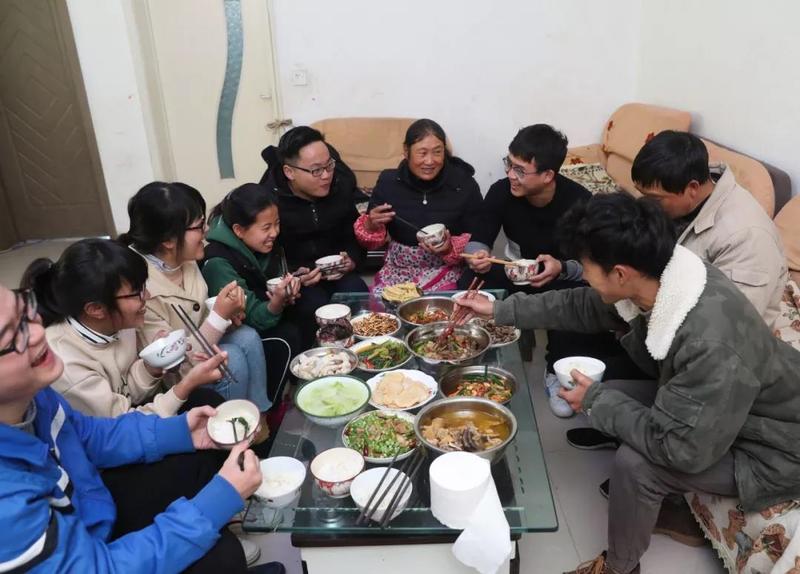 1月27日,杨孟平在家与亲戚朋友一起吃午饭,他边吃边分享所见所闻。