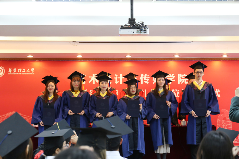王珊宣读了2019届艺术学院授予研究生学位名单。本届获得工学博士学位学生1名、艺术学硕士学位学生24名、工学硕士学位学生5名、艺术硕士专业学位学生6名、工业设计工程专业学位学生26名。