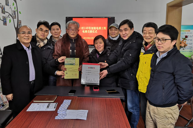 2018年4月,工程启动立项,并在四个月完成审批流程。8月18日,加装电梯工程破土动工,12月28日工程顺利竣工。2019年2月25日,电梯正式获得特种设备使用登记证。