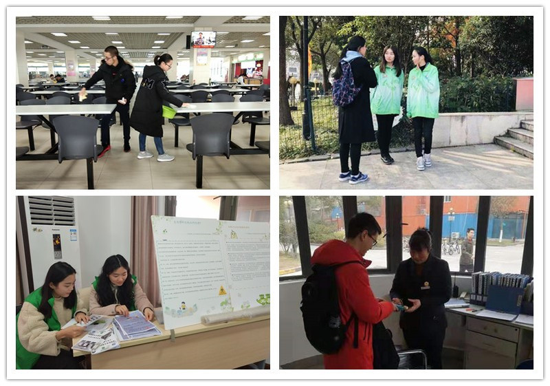 为广泛宣传《上海市生活垃圾管理条例》,积极倡导青年学子在生活中践行保护环境、低碳生活的理念,更好地推进垃圾分类工作的开展,校青年志愿者协会举办了“环境保护、有你有我——垃圾分类”科普宣讲系列活动。当天中午,志愿者们在奉贤校区第一食堂前进行“垃圾分类”倡议活动,向同学们讲述如何分辨四类垃圾,同时为积极参与倡议活动的同学赠送垃圾袋,请同学们倒垃圾前自觉分类投放垃圾,并努力减少垃圾产生量,从身边做起、从小事做起、从现在做起,共同建设美丽校园。当天下午,药学院青志协走进奉贤区海湾社区举办“垃圾分类”社区宣传活动,志愿者们通过精心准备的PPT、科普小游戏、发放垃圾分类宣传册等方式阐明垃圾对居民生活造成的不利影响,宣传低碳环保的理念,呼吁社区居民积极参与垃圾分类、树立正确的环保意识。