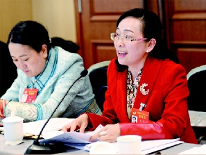 石红委员在小组讨论会上发言。 本报记者 齐波 摄
