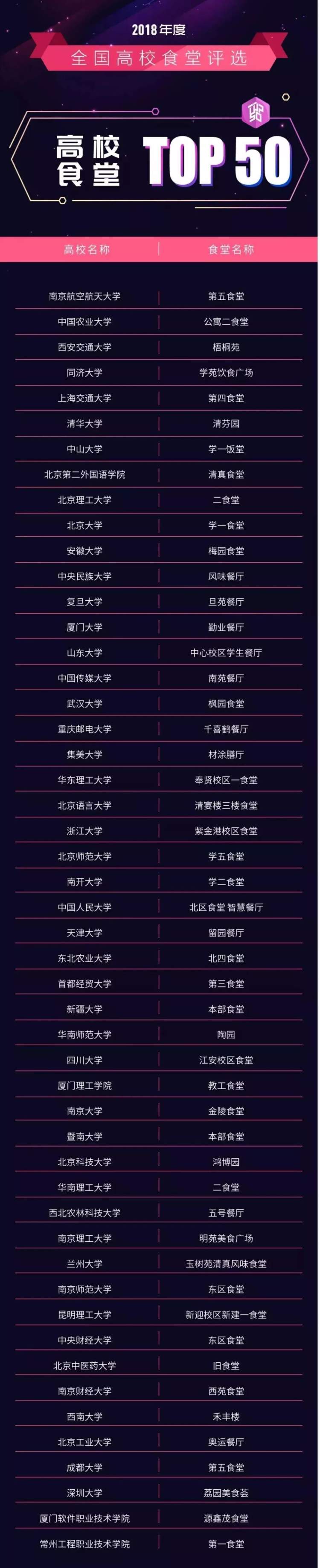今年2018年度全国高校食堂排行top50出炉,能“吃”进“榜单的食堂都长什么样,有什么样的饭菜?