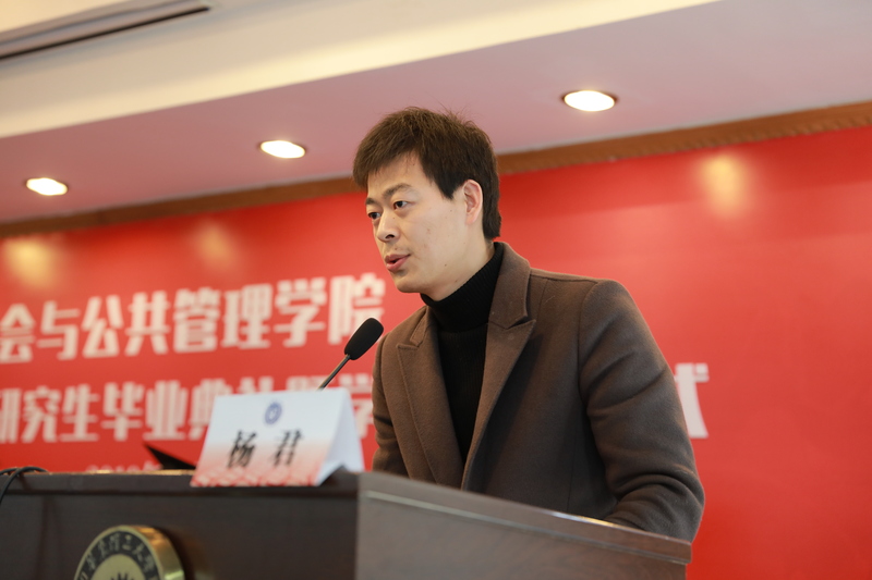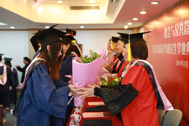3月8日下午,社会学院2019届春季研究生毕业典礼暨学位授予仪式举行。研究生院常务副院长龚学庆,社会学院院长、党委副书记、社会与法分学位评定委员会主席何雪松,社会学院党委书记张广利,社会学院副院长杨发祥、刘晓亮,公共管理一级学科硕士点导师组组长郭圣莉,土地资源管理导师组组长俞慰刚,MSW教育中心主任费梅苹,以及系主任、学院部分教师、毕业生家属和2019届春季毕业研究生共同见证这一庄严而神圣的时刻。毕业典礼由社会学院党委副书记万胤婕主持。