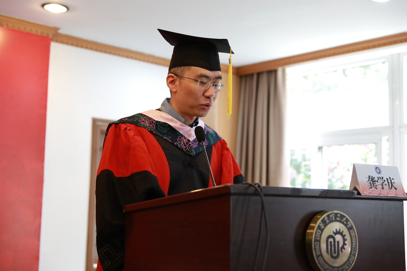 教师代表杨君发言。他指出,毕业生在走向社会时,可能会面对诸多危机和挑战,应时刻脚踏实地,不忘自己的追求,不忘改变社会的初心,在学校之外的领域也能收获满满。他希望毕业生视华理如初见,时时想念。