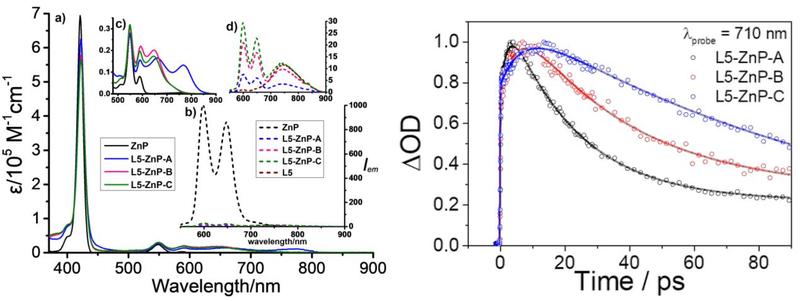 两个卟啉相连形成的多卟啉化合物相比单个卟啉具有更为特殊的性质,如分子内能量/电子转移、双光子吸收、非线性光学等性能,可应用于诸多领域。但是,目前仍然缺乏构建二聚卟啉,尤其是异卟啉-卟啉二聚体的有效策略。解永树教授课题组巧妙地将前期发展的大环转化策略与高效卤代反应有机结合,成功合成三种新型五卟啉的高区域选择性单卤代中间体,并进一步通过Sonogashira反应与锌卟啉炔偶联,成功构建三个不同吡咯位点键连的异卟啉-卟啉二聚体。结果表明,二聚体分子内存在从卟啉到异卟啉的可控能量转移过程。有趣的是,与α键连的二聚体相比,β键连方式具有更高的分子内能量转移效率。基于该策略,可进一步设计合成具有独特结构与性能的异卟啉二聚或多聚体,拓展多卟啉类化合物的功能,应用于有机光电功能材料等领域。