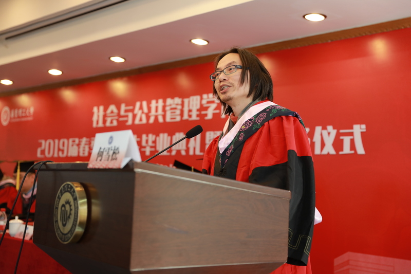 3月8日下午,社会学院2019届春季研究生毕业典礼暨学位授予仪式举行。研究生院常务副院长龚学庆,社会学院院长、党委副书记、社会与法分学位评定委员会主席何雪松,社会学院党委书记张广利,社会学院副院长杨发祥、刘晓亮,公共管理一级学科硕士点导师组组长郭圣莉,土地资源管理导师组组长俞慰刚,MSW教育中心主任费梅苹,以及系主任、学院部分教师、毕业生家属和2019届春季毕业研究生共同见证这一庄严而神圣的时刻。毕业典礼由社会学院党委副书记万胤婕主持。