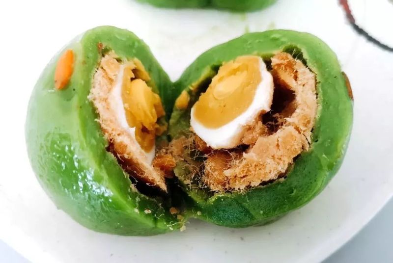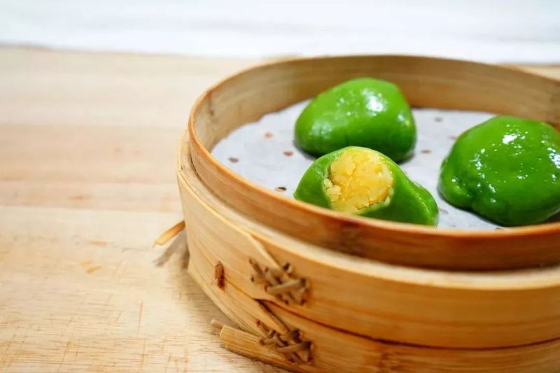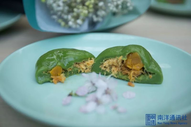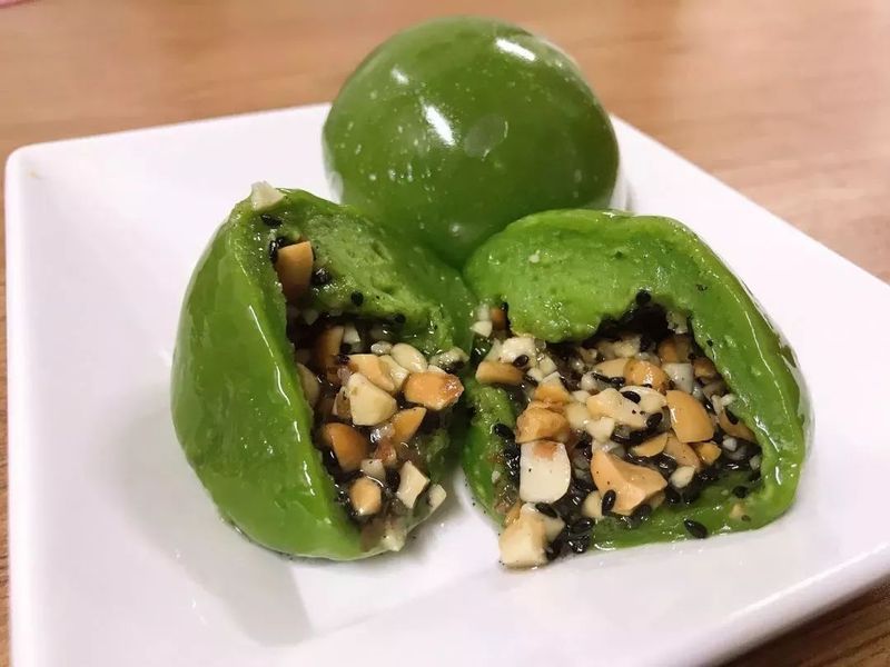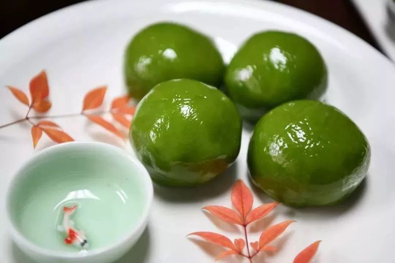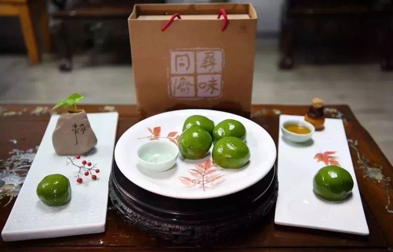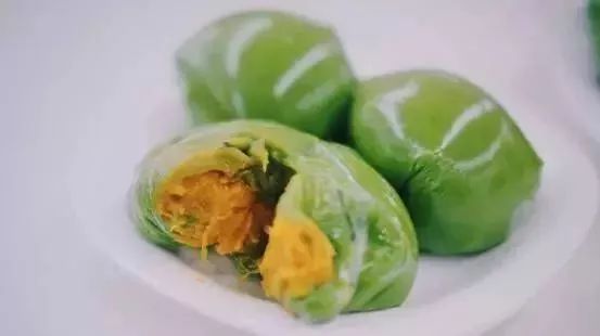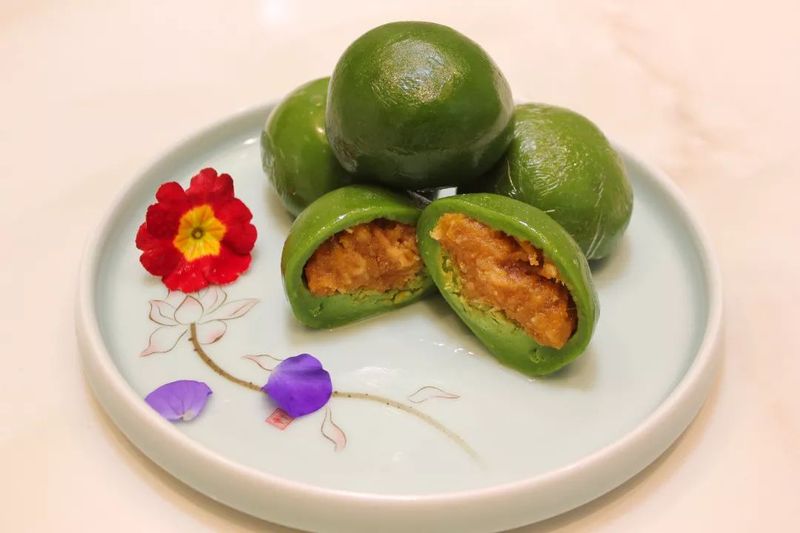 豆沙青团、蛋黄肉松青团、荠菜鲜肉青团、南瓜青团