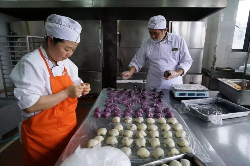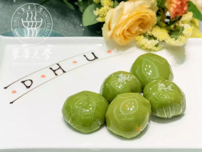 张江校区学生食堂二楼:传统豆沙青团、山药枸杞椰丝青团