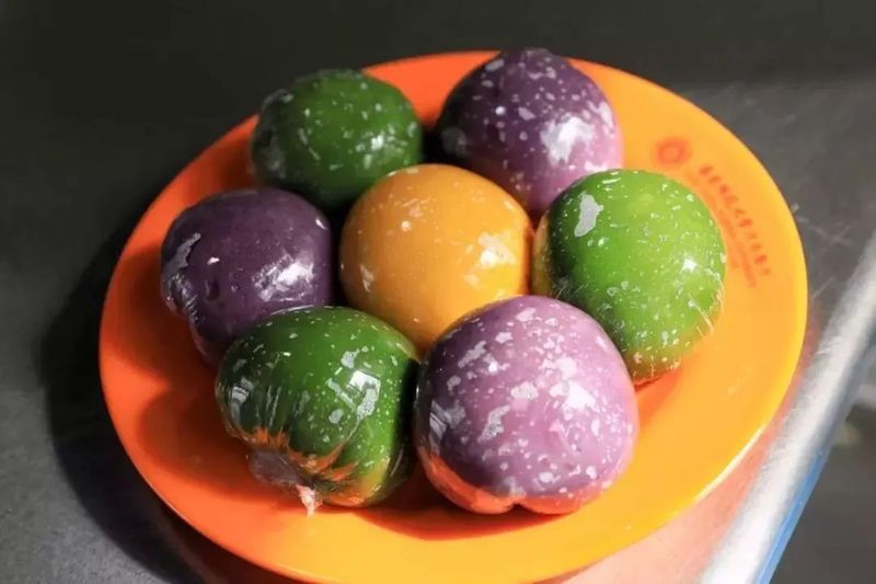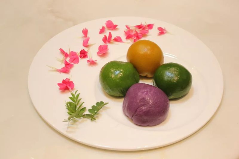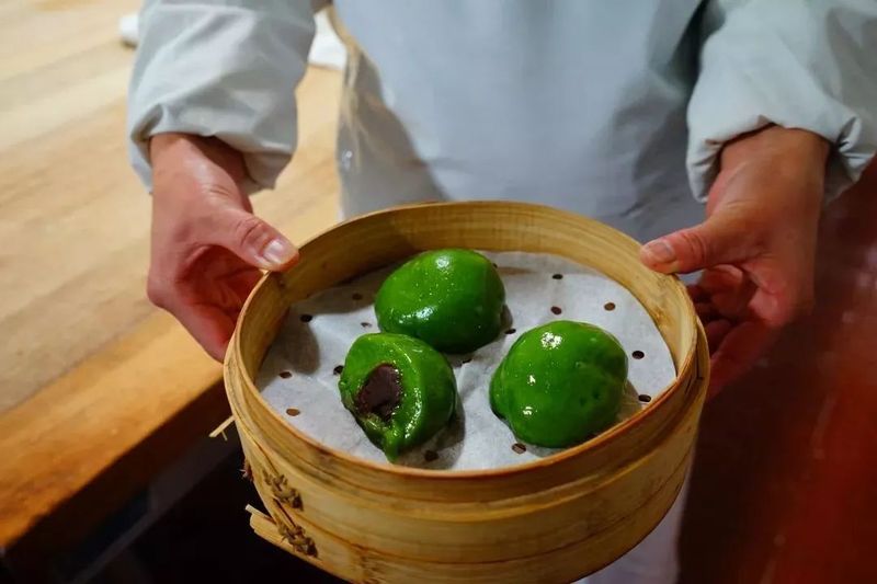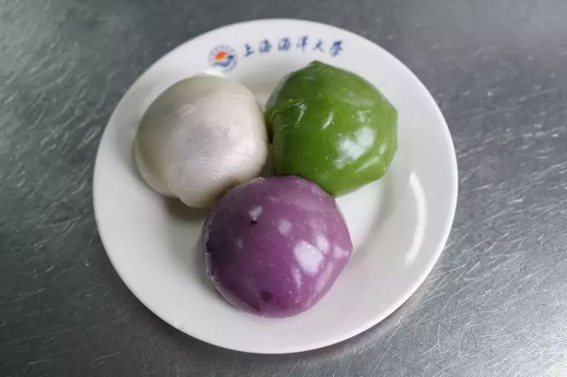 张江校区学生食堂一楼:紫薯青团、荠菜鲜肉青团、豆沙薏米仁青团