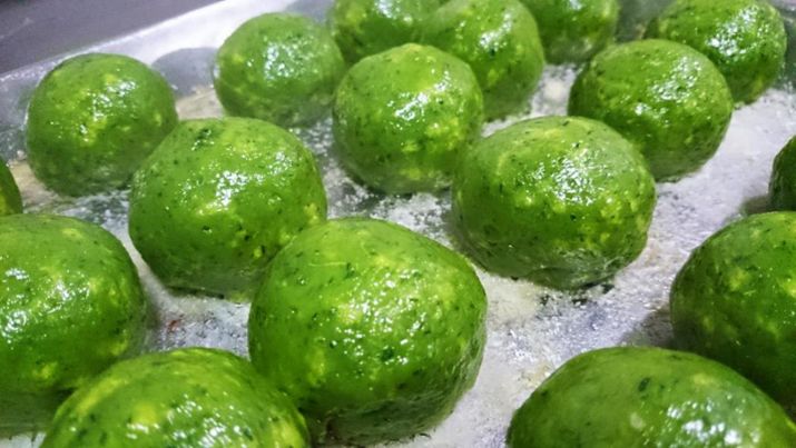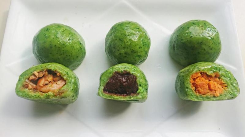 紫薯青团、荠菜鲜肉青团、传统豆沙青团