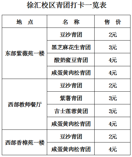 地点时间:徐汇校区早餐、午餐供应;奉贤校区早餐供应,