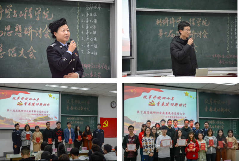 3月17日晚,材料学院第十届思想研讨会总结大会于奉贤校区A教202举行。材料学院党委副书记戴诚安、海湾高校派出所教导员高梅香和警官张志荣、资环学院党建指导教师王青、材料学院各年级辅导员、学生党员、入党积极分子、群众等近200人参加会议。此次活动也是材料学院与海湾高校派出所党建共建系列活动之一。