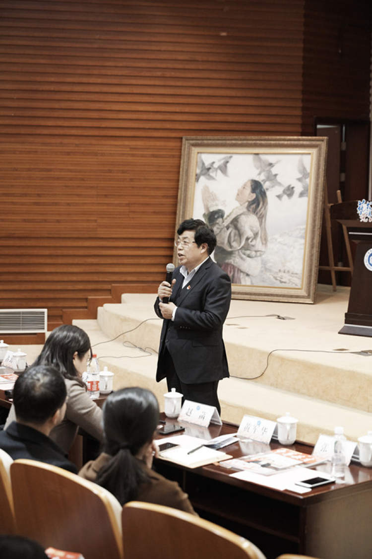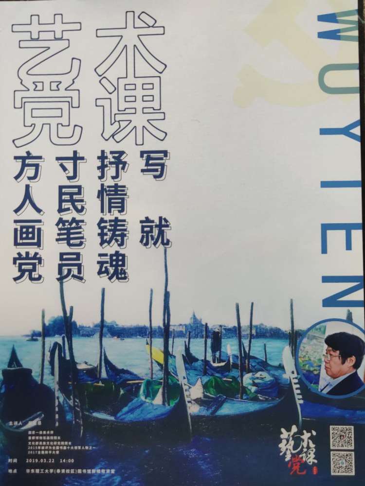 3月22日下午,在华东理工大学奉贤校区敬贤堂内,国家一级美术师、首都博物馆画院院长、文化部民族文化研究院院长、吴宜恩为华东理工大学艺术学院及奉贤区海湾旅游区的300余名党员、学生上了一堂题为“方寸抒写人民情,画笔铸就党员魂”的艺术党课。