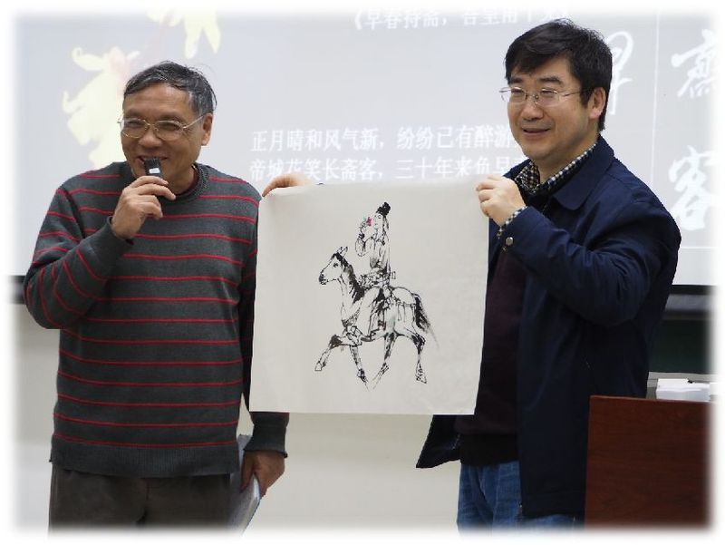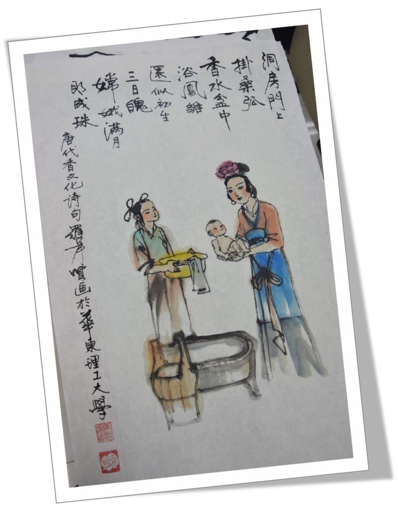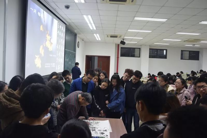 在课上,罗希贤现场作画,先后完成三幅主题字画,让学生们啧啧称奇,争相围观提问。无论是“竹无俗韵茶有奇香”,还是“香水盆中浴凤雏”,或是“垂鞭踏青草,来去杏园芳”,都在一笔一墨之间阐释“香”的艺术审美和文化内涵。